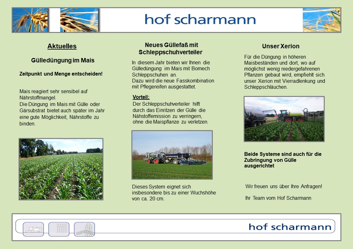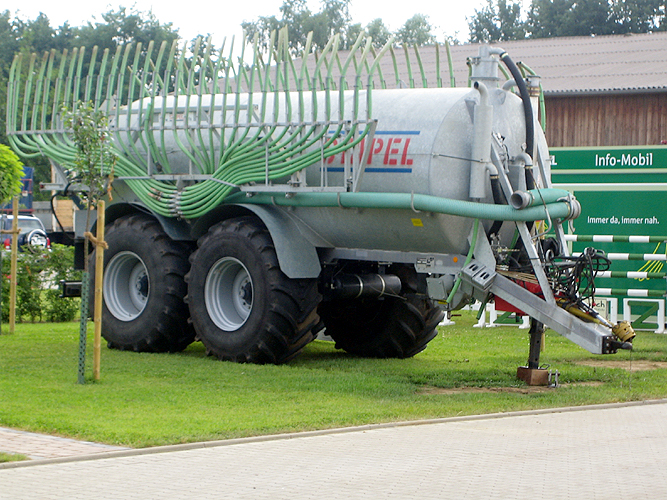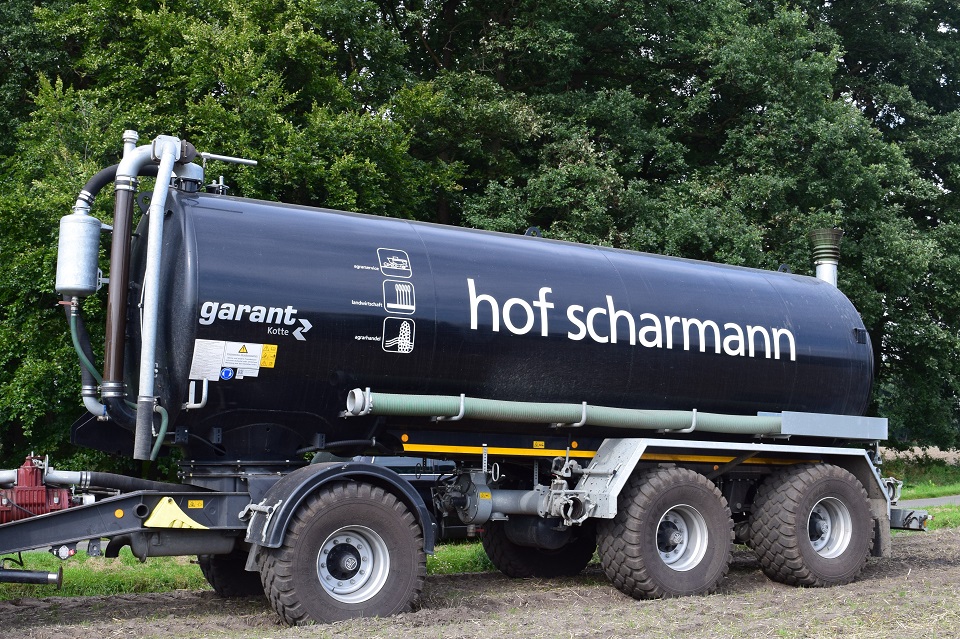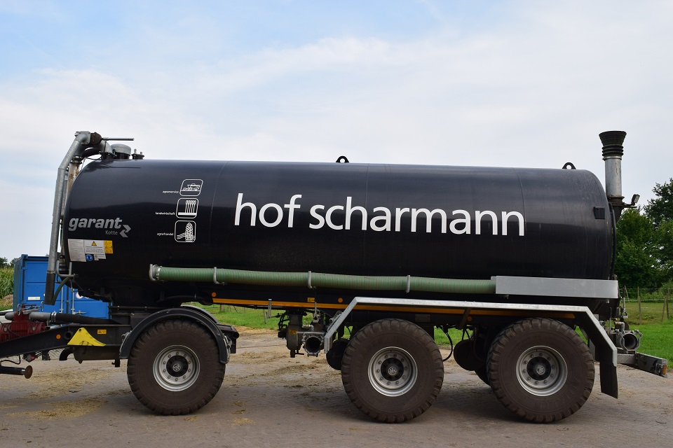 - Ihre Gülle bringen wir mit unseren 19.800 Liter Vakuumfässern mit 15 m, bzw. 21 m Schleppschlauchverteilern auf Ihre Felder. Für die Ausbringung in Mais steht eine Pflegebereifung mit 2,25 m Spur an.