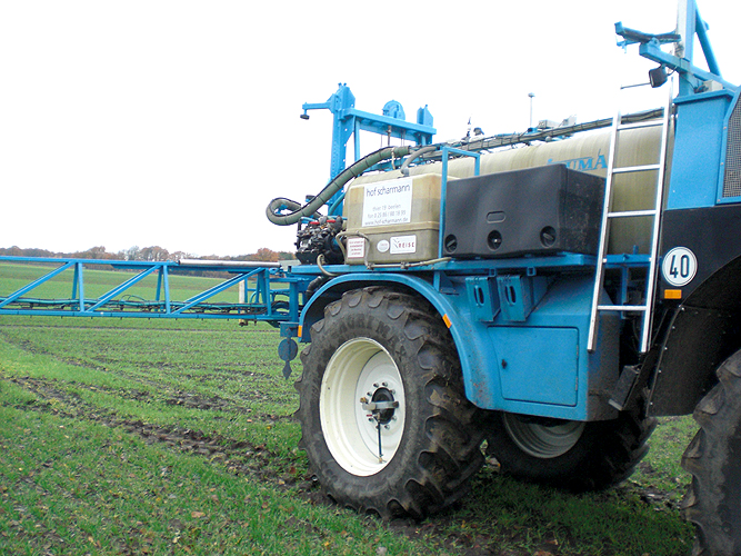 Für den Pflanzenschutz steht Ihnen unsere selbstfahrende Spritze zur Verfügung.
