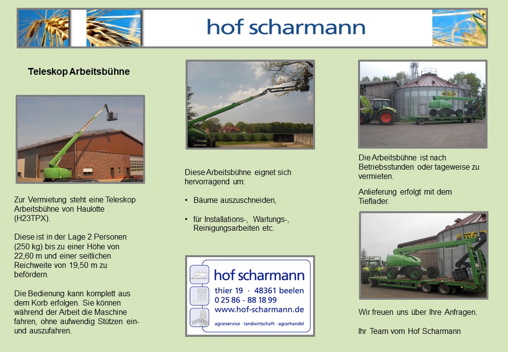 - Die Arbeitsbühne ist in der Lage zwei Personen in eine Höhe von ca. 22,60 m zu befördern